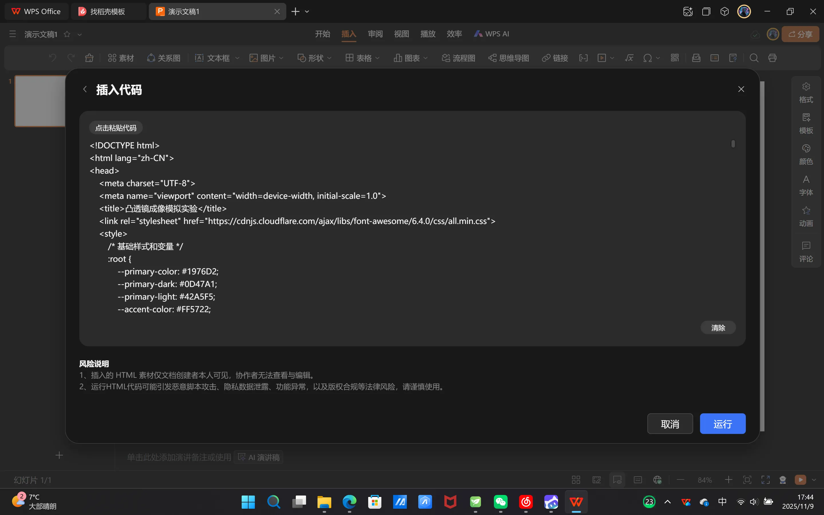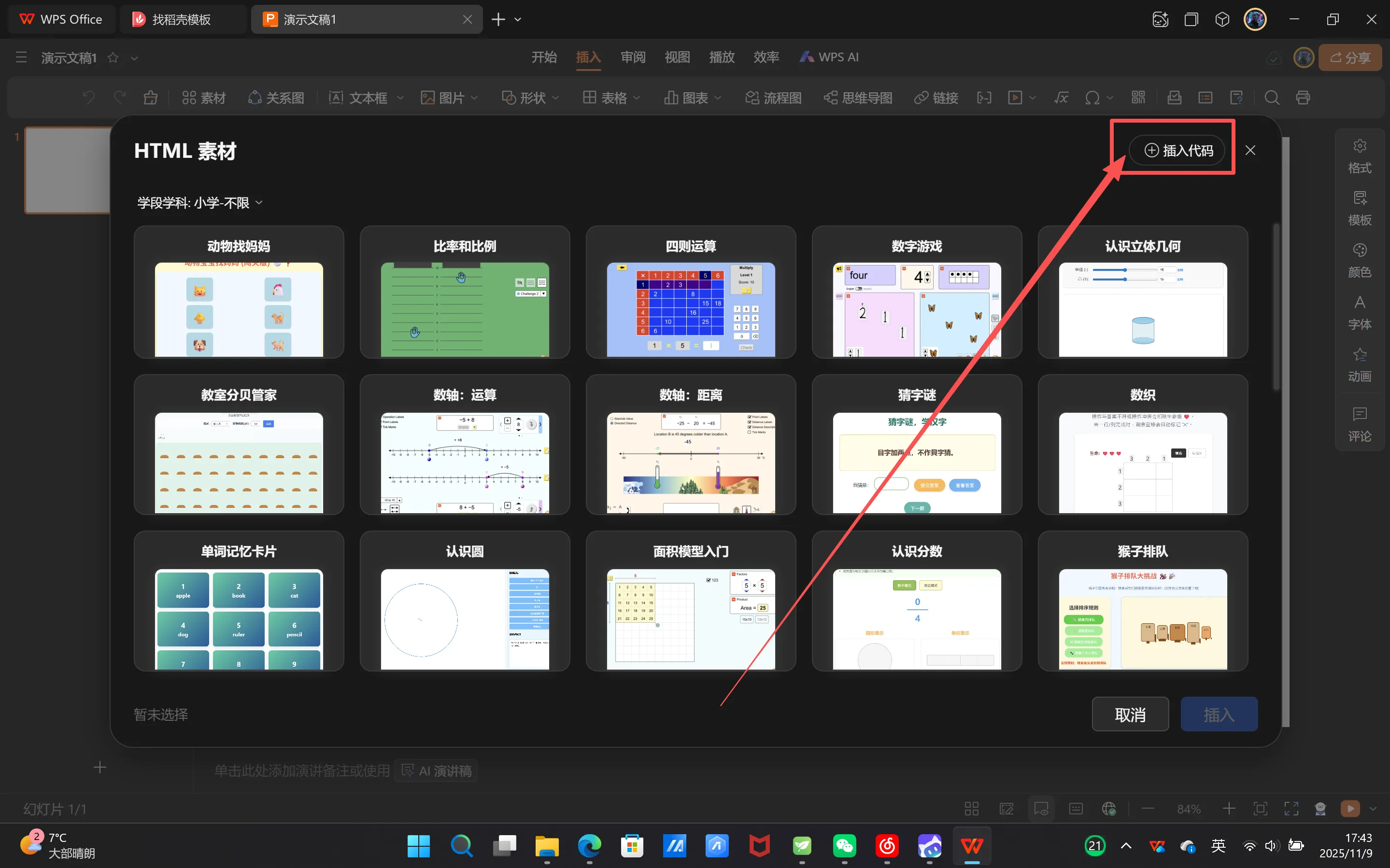 点击“插入代码”