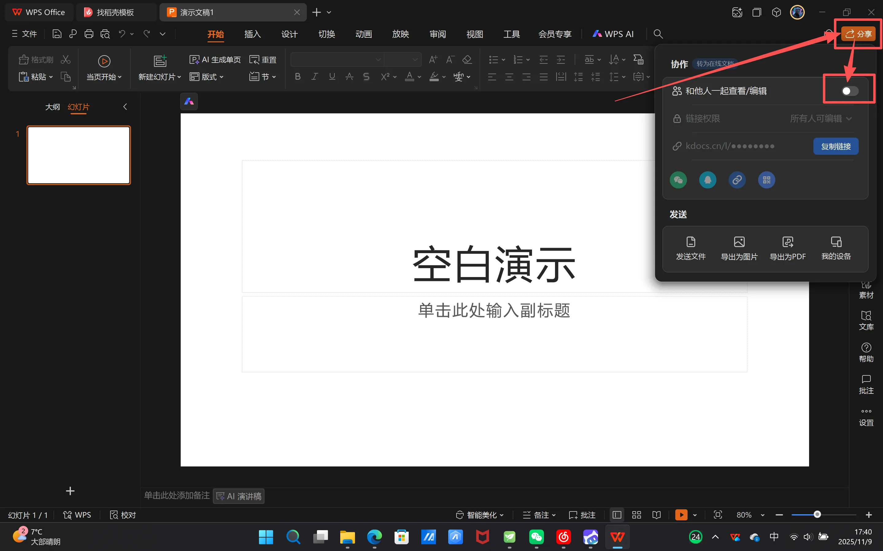 然后就会自动变成一份在线的PPT