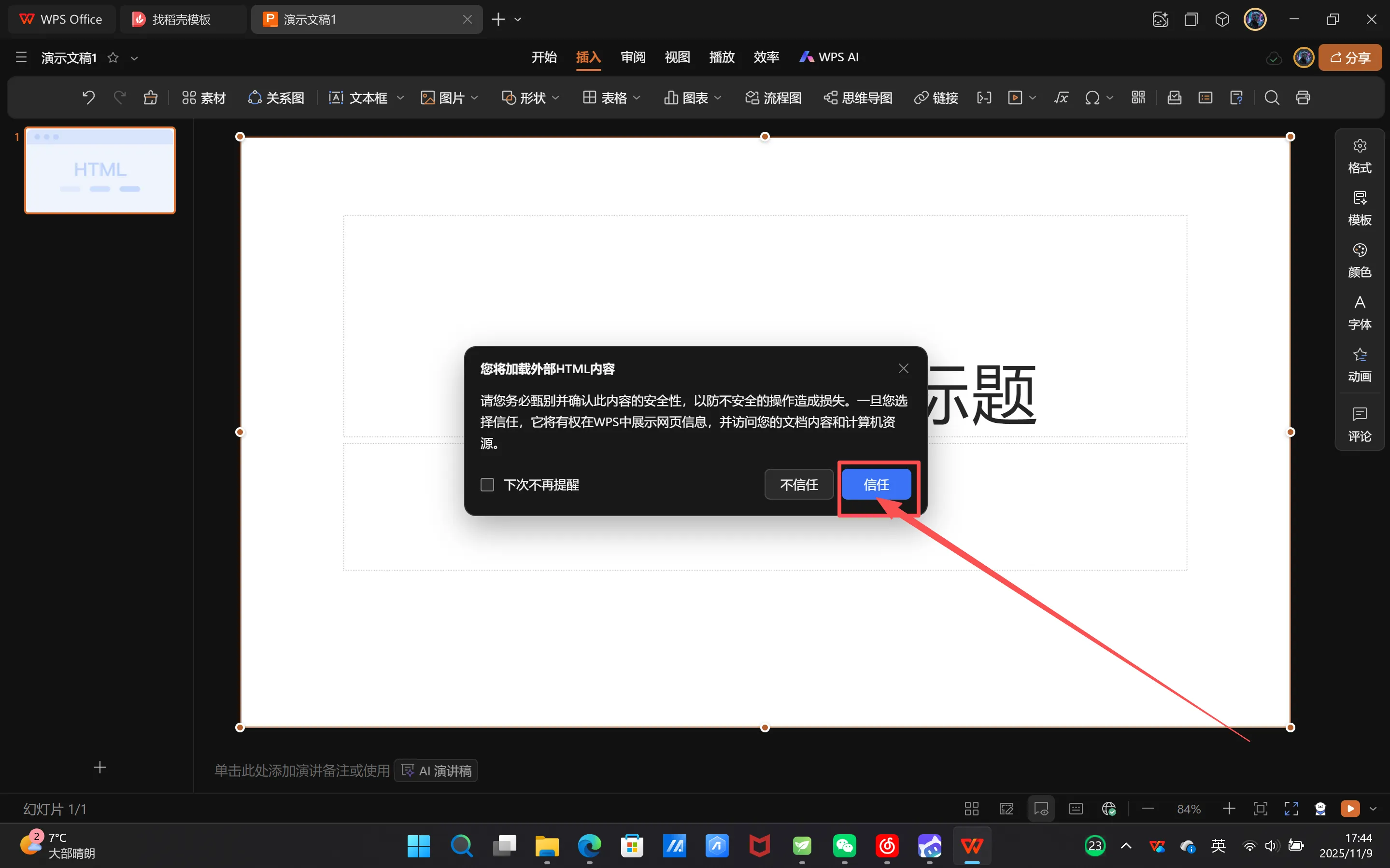 第一次插入代码会有下图的提示,选择“信任即可”