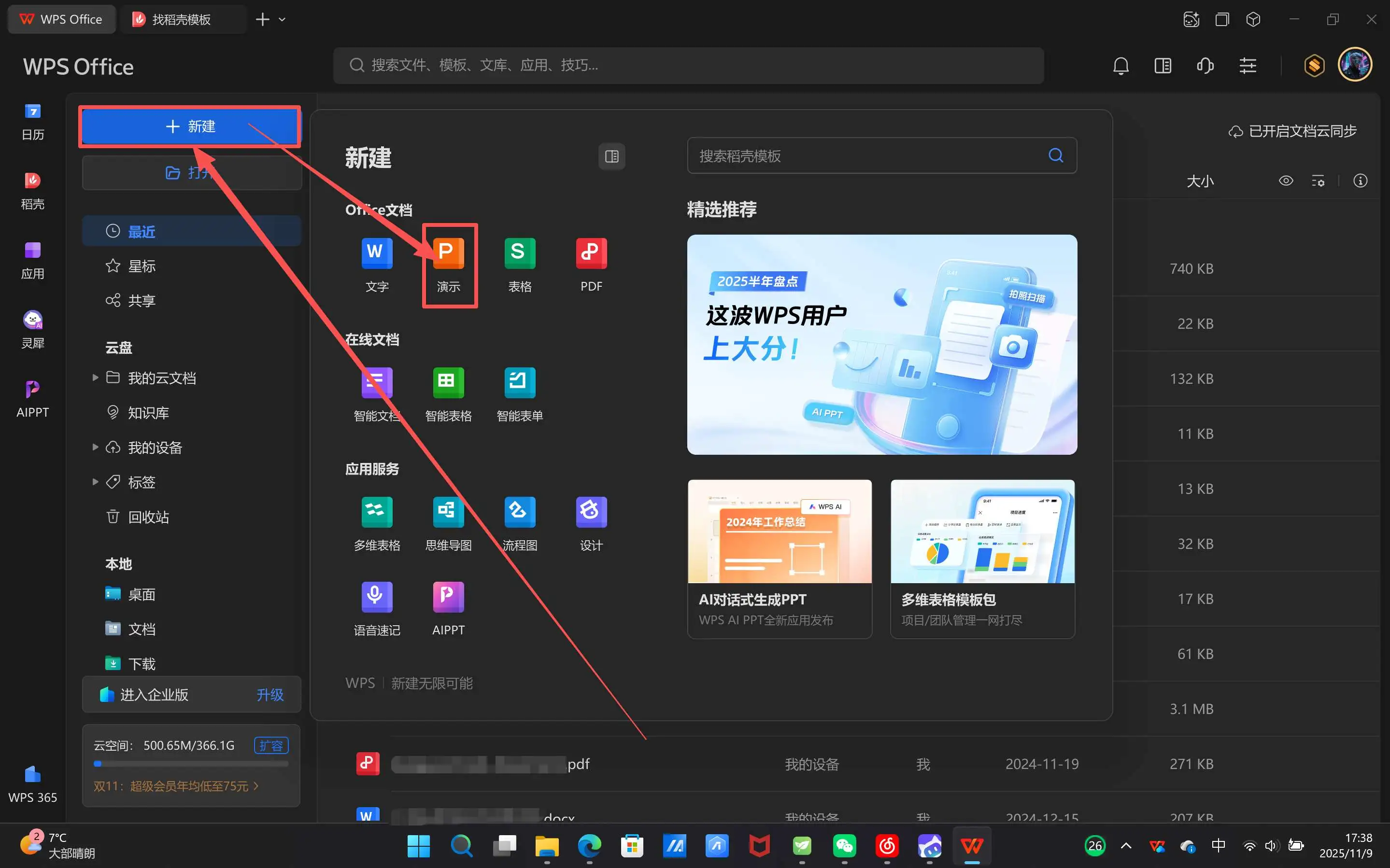 打开WPS,新建一个演示