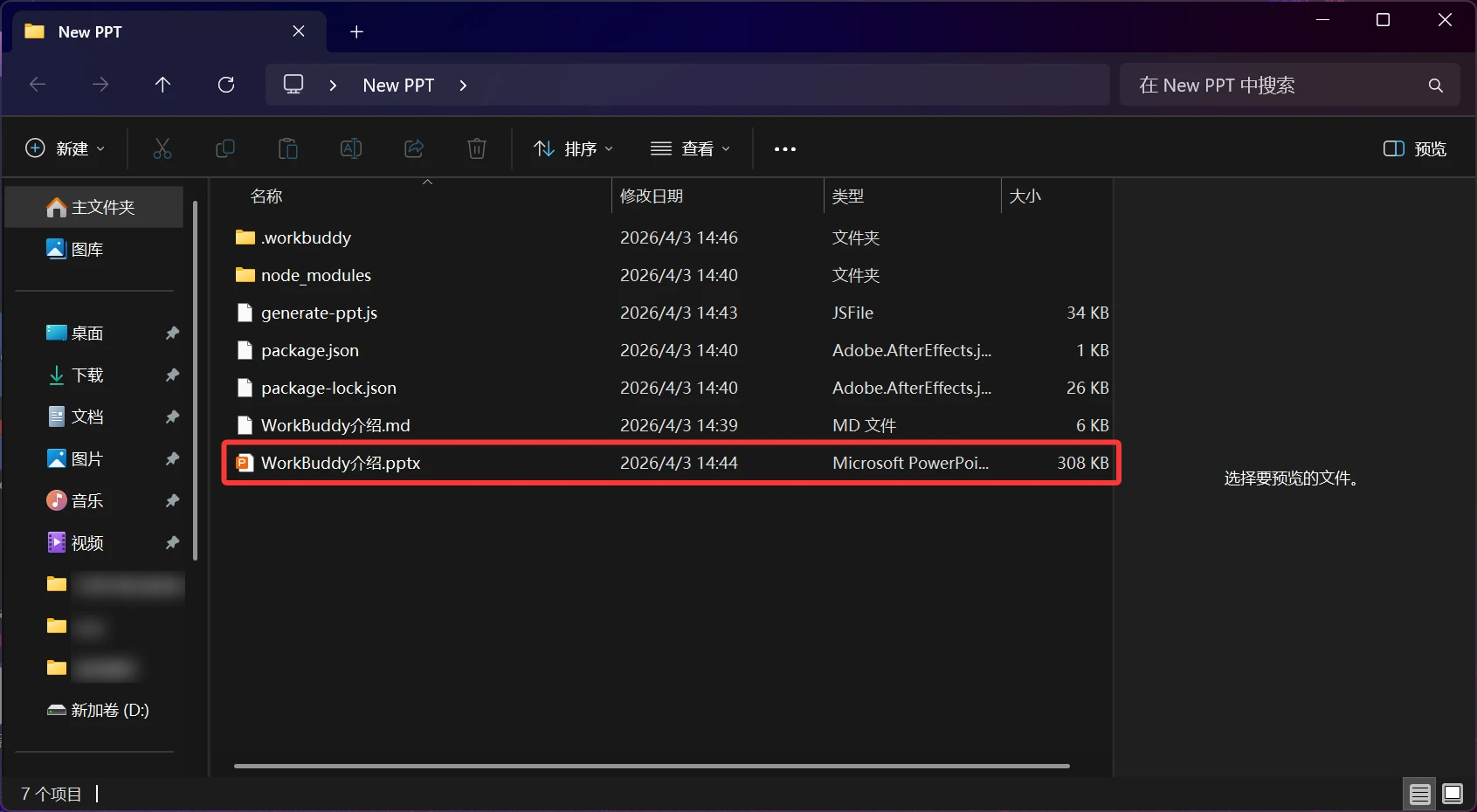 PPT 生成完成后保存在你创建的文件夹中,双击即可打开查看效果。后续还可以继续让 WorkBuddy 修改优化。