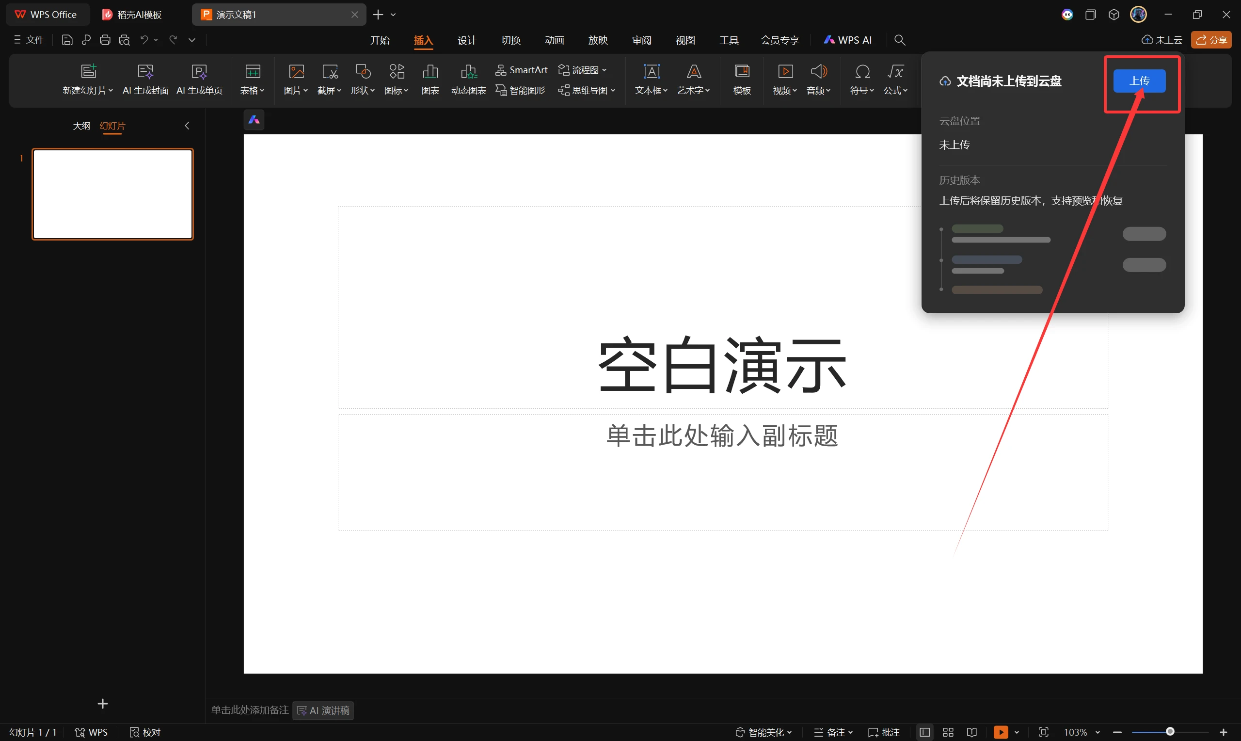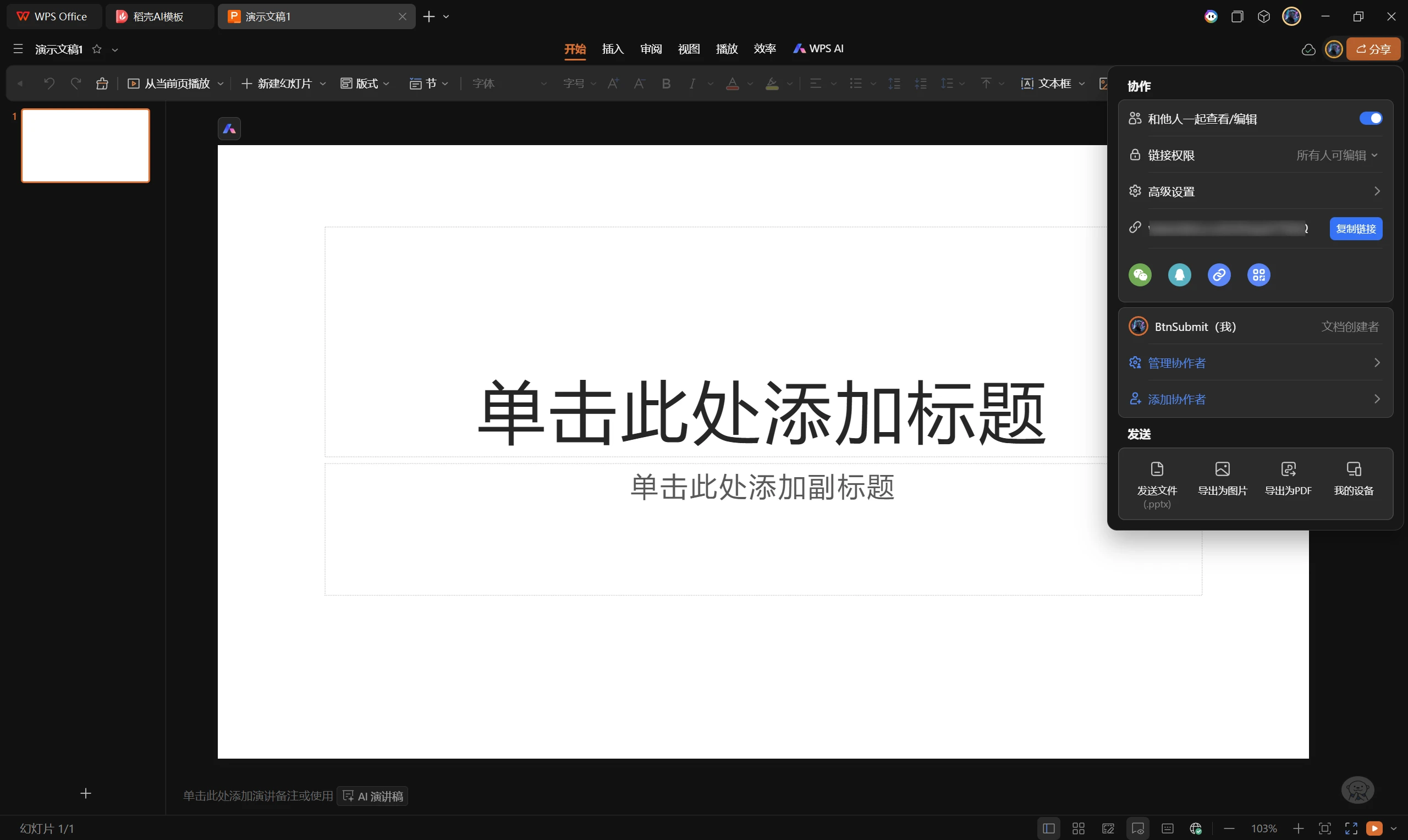 点击「幻灯片」功能,进入 PPT 制作模式。